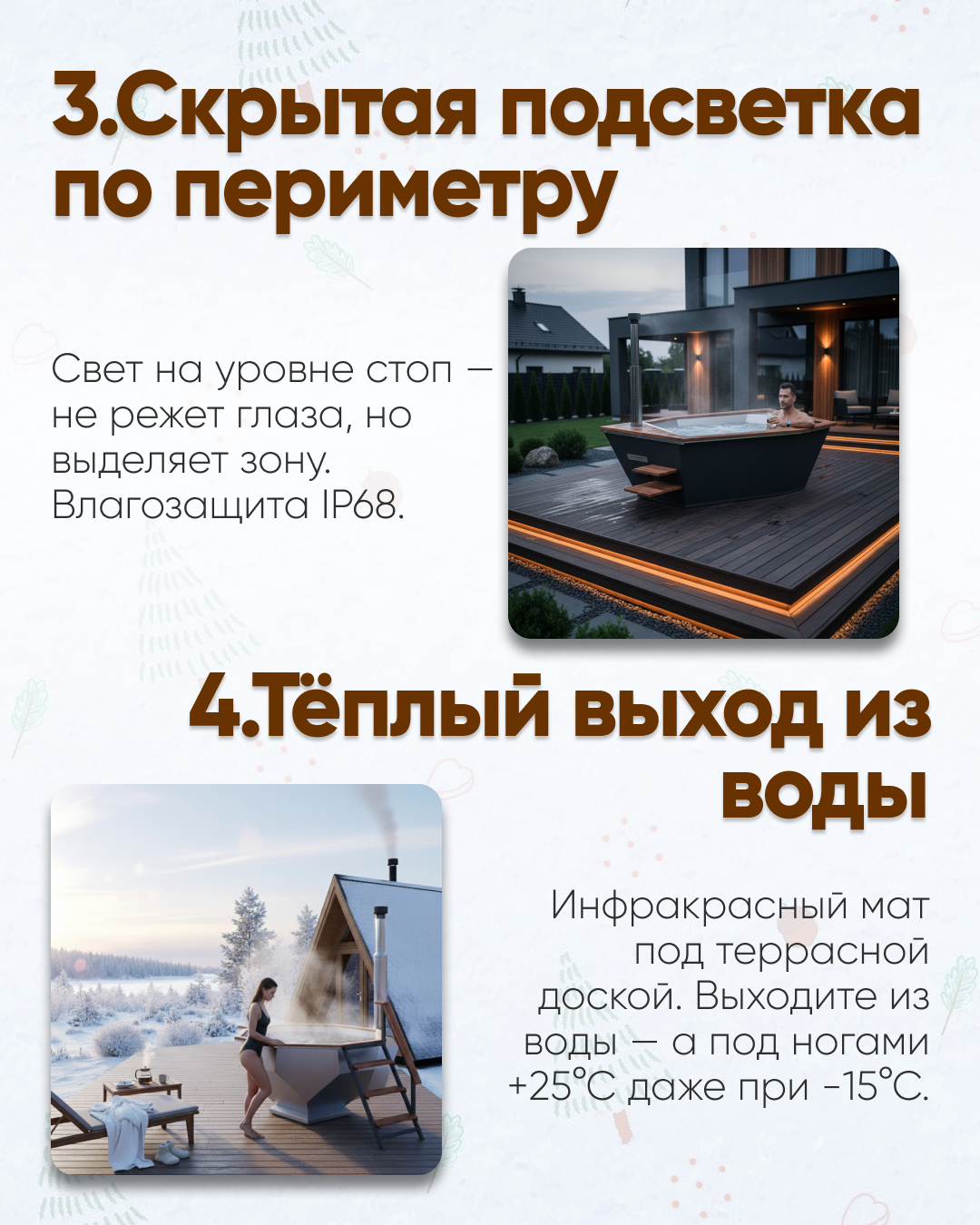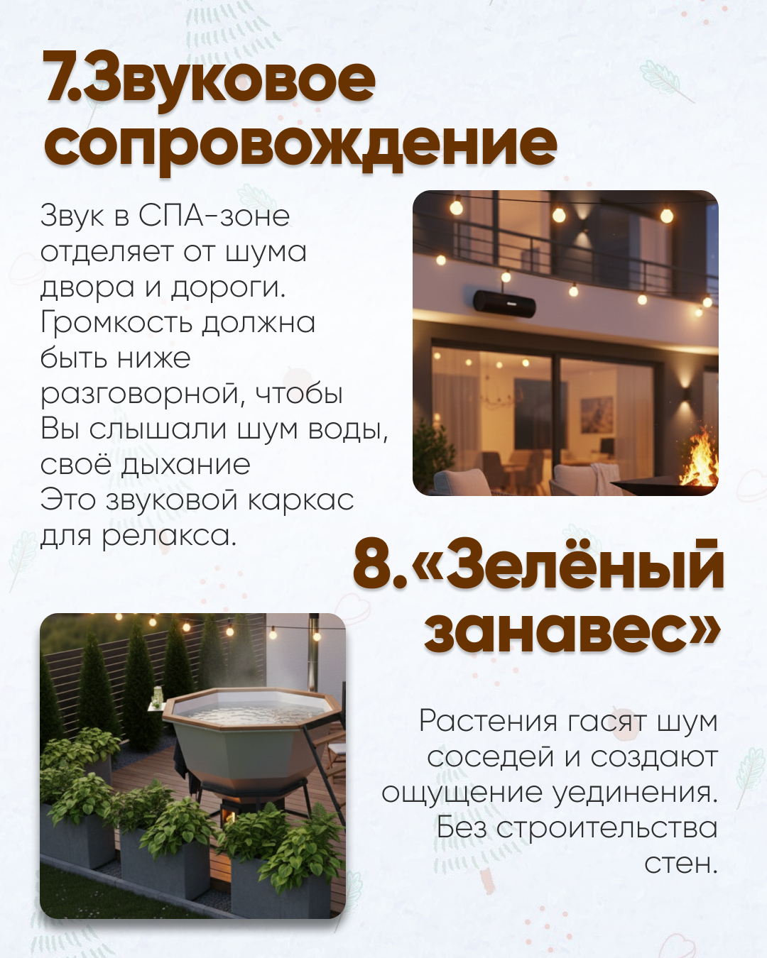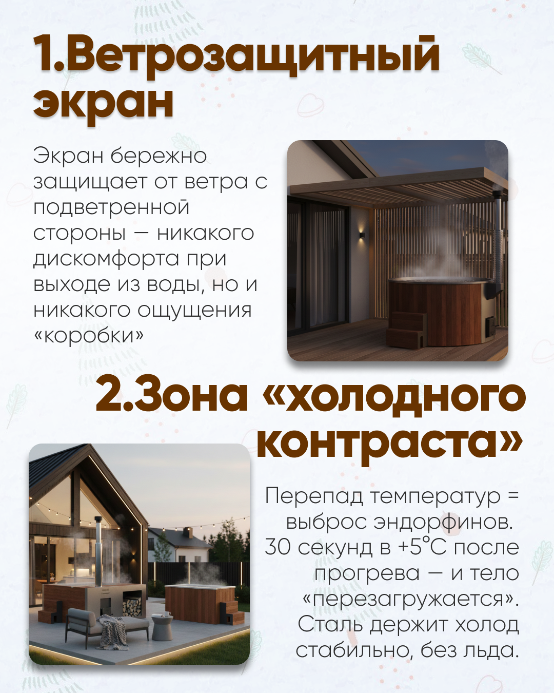 Домашняя СПА-зона – это про продуманную экосистему вокруг купели: элементы, которые работают вместе и создают ощущение уединённого оазиса даже в городской черте.
