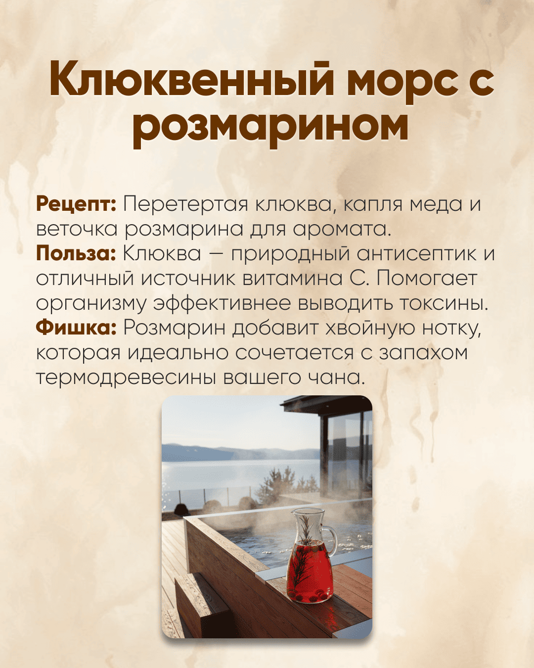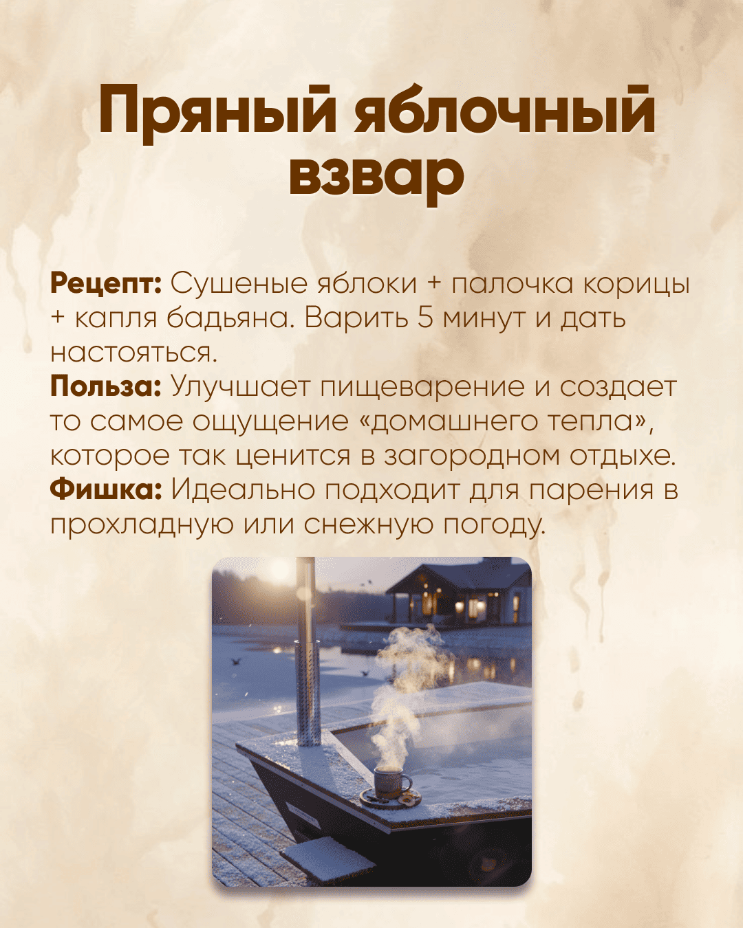 - Натуральные взвары: Создают атмосферу традиционного русского отдыха.