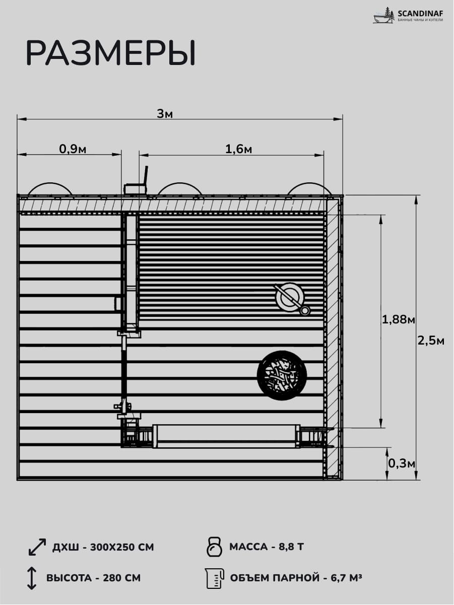 —Уличная баня, уличная сауна Scandinaf Ignis, 3x2,5м, 2-3 чел.