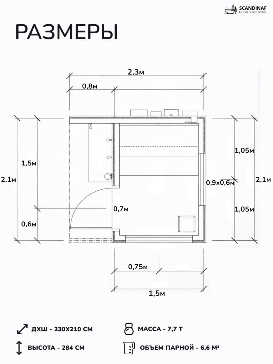 —Уличная баня, уличная сауна Scandinaf Steam, 2,3x2,1м, 2-4 чел.