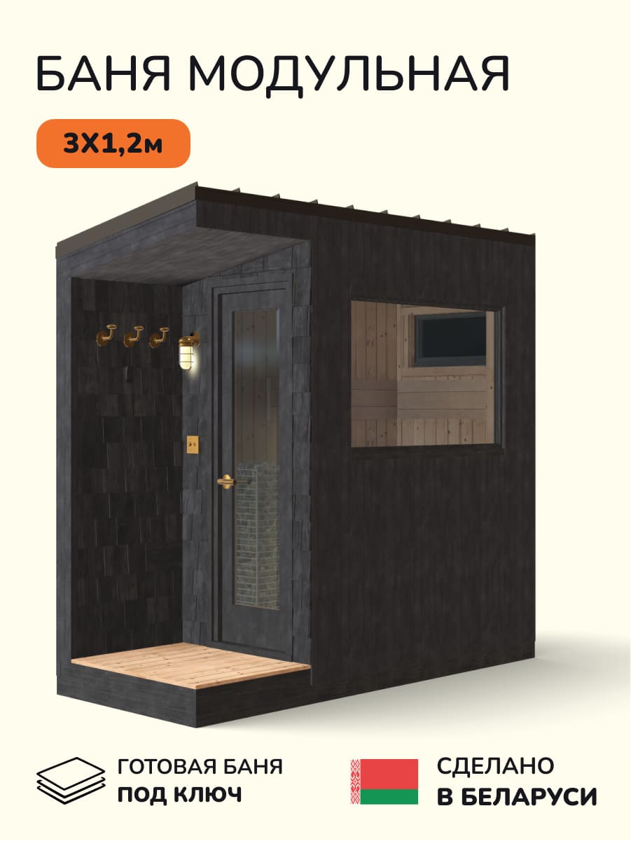 Уличная баня, уличная сауна Scandinaf Haze, 3х1,2м, 2-4 чел., чёрный