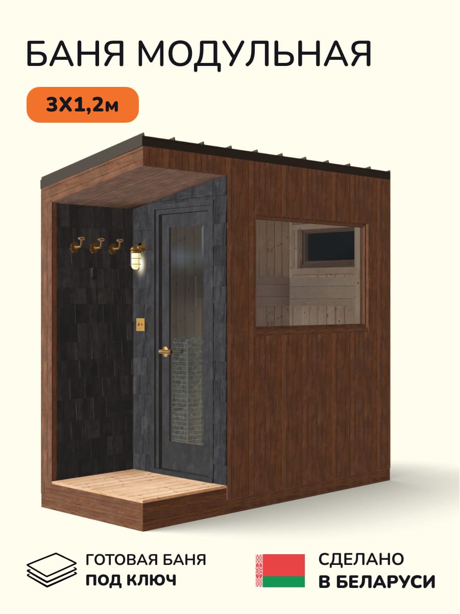 Уличная баня, уличная сауна Scandinaf Haze, 3х1,2м, 2-4 чел., морёный натуральный