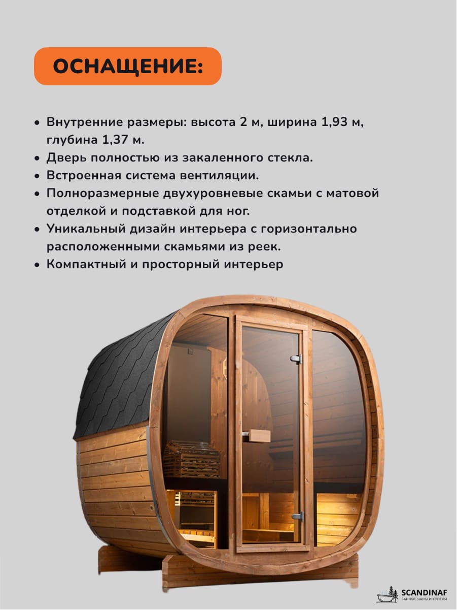 —Баня-бочка, уличная баня, уличная сауна Scandinaf Vibe, 1,65x2,1м, 2-4 чел.