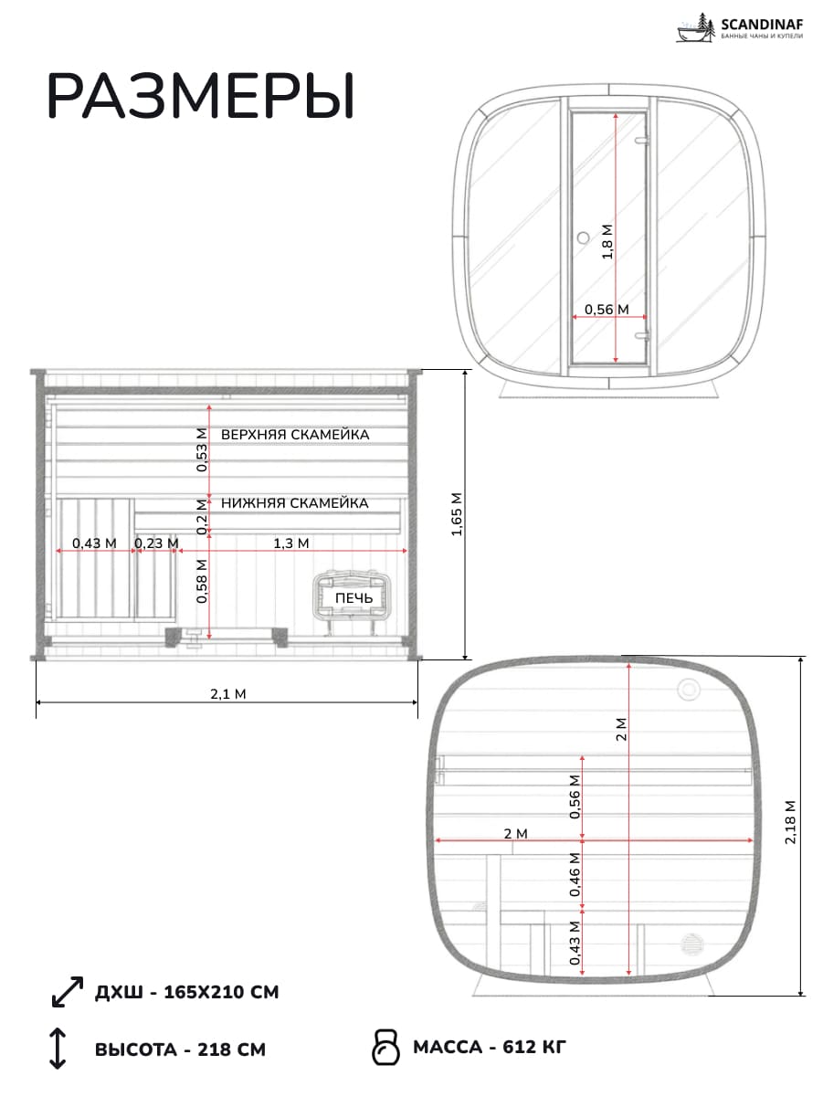 • Энергоэффективность: Продуманная эргономика и герметичность конструкции позволяют бане быстро прогреваться до рабочей температуры, долго удерживая мягкое, обволакивающее тепло.