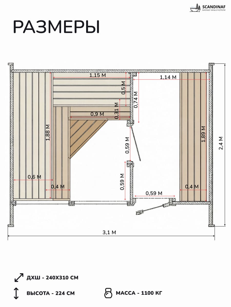 • Энергоэффективность: Продуманная эргономика и герметичность конструкции позволяют бане быстро прогреваться до рабочей температуры, долго удерживая мягкое, обволакивающее тепло.