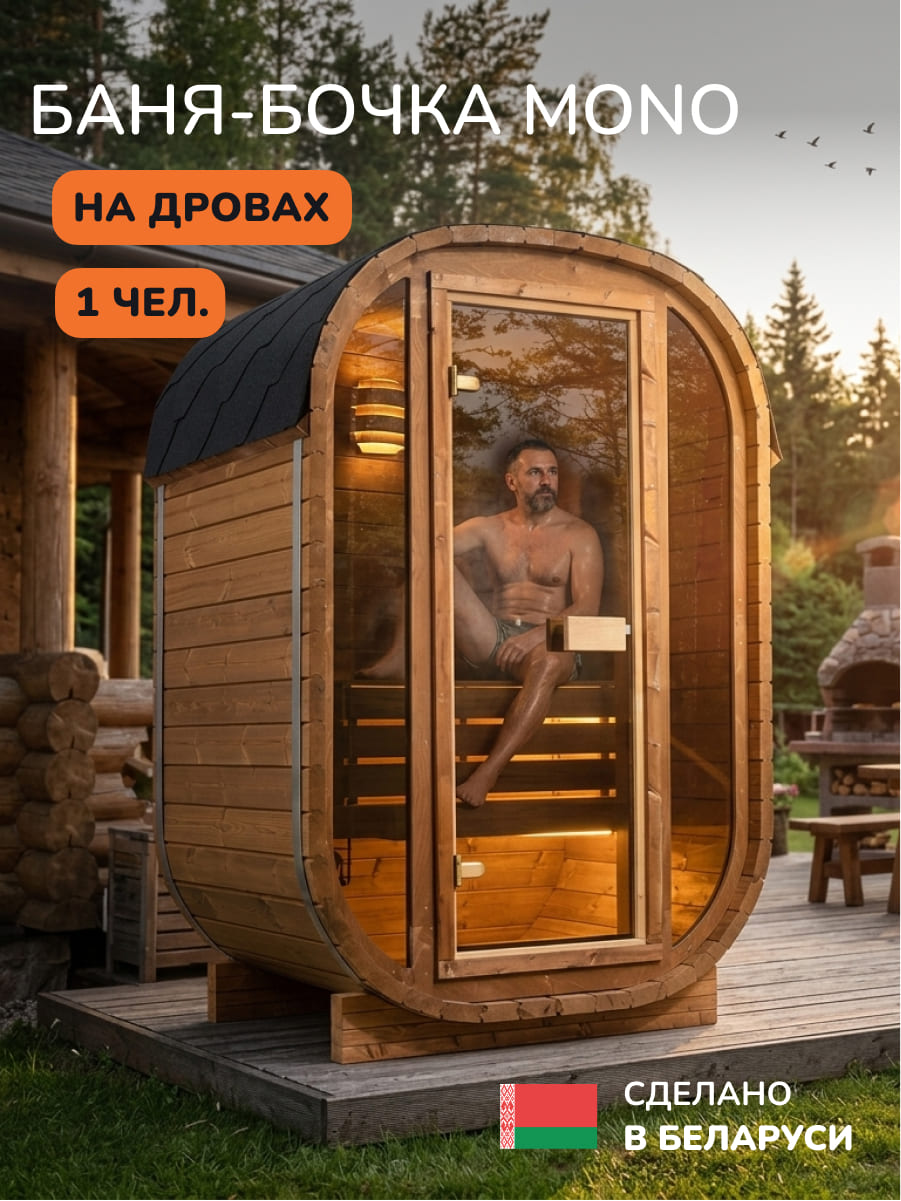 —Баня-бочка, уличная баня, уличная сауна Scandinaf Mono, 1,3x1,35м, 1 чел.