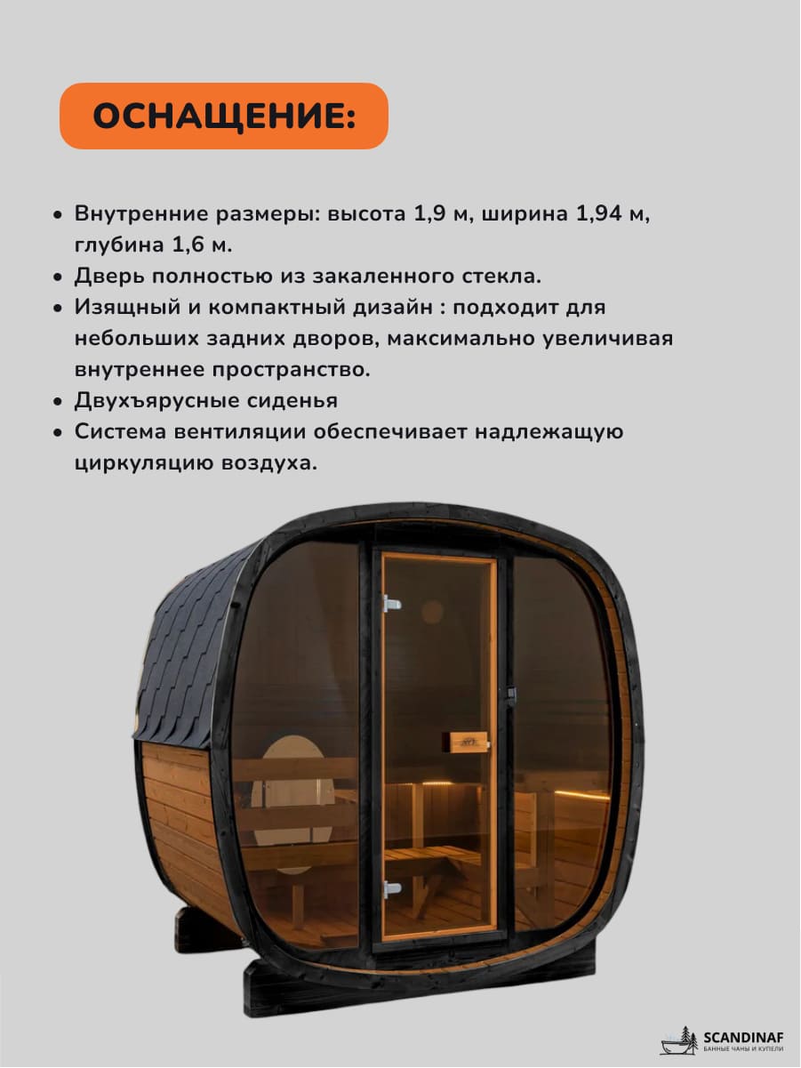 —Баня-бочка, уличная баня, уличная сауна Scandinaf Prime, 1,6x2,1м, 3-4 чел.