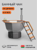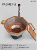 Дровяная печь из нержавеющей стали толщиной 3 мм. У основания печи расположен сливной кран, чтобы можно было быстро слить воду из чана. С обратной стороны к печи крепится сэндвич-дымоход, который отделяет горячую трубу от прикосновений, тем самым убирает риск обжечься о металл. Составной дымоход изготовлен из нержавеющей стали толщиной 1 мм, что предотвращает постепенное прогорание дымохода, а дефлектор с ветрозащитой и искрогасителем защищает дымоход от осадков, а территорию вокруг чана от продуктов горения, искр и пепла.