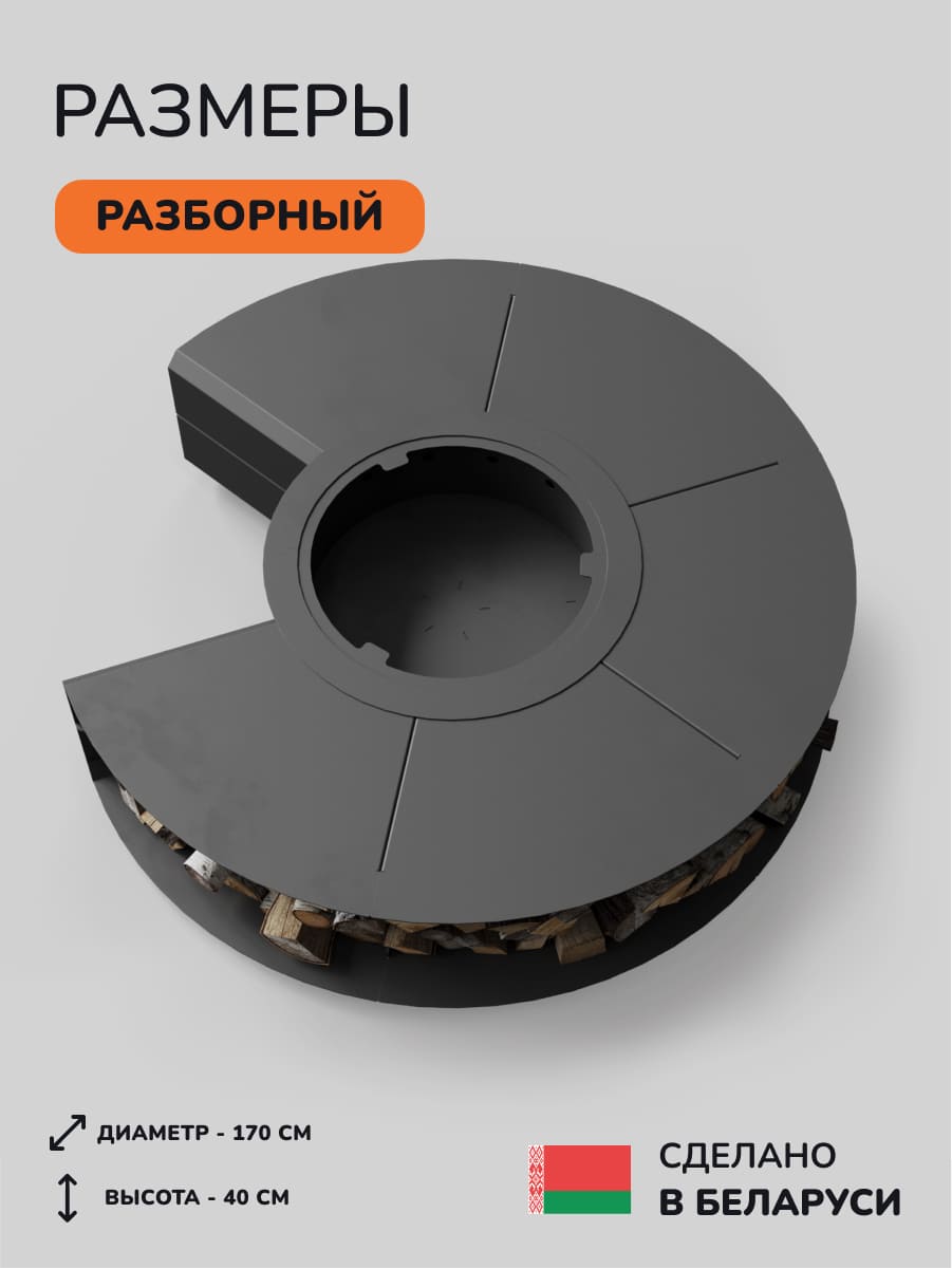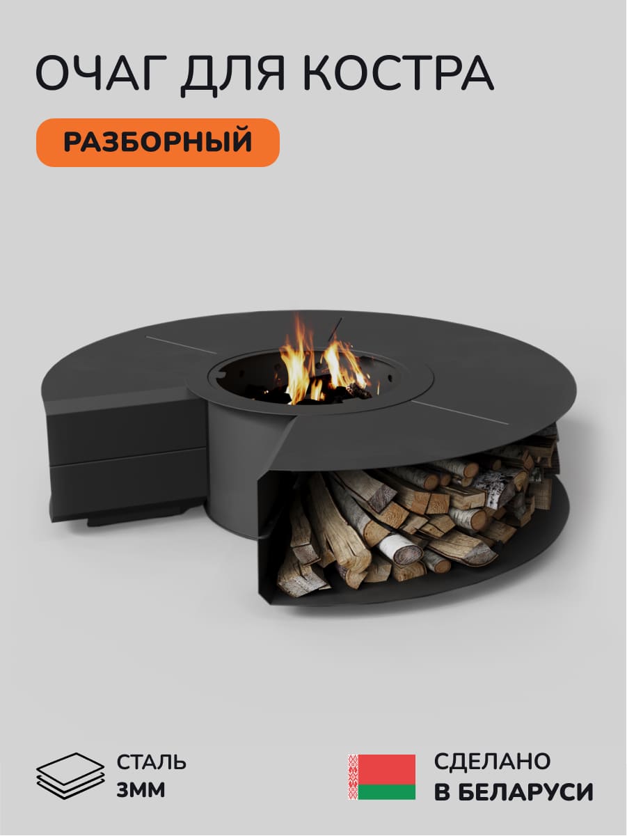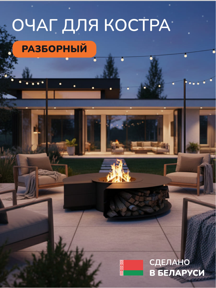 🔥 Удобная конструкция — центральная чаша для огня окружена практичной полкой для хранения дров, все необходимое всегда под рукой