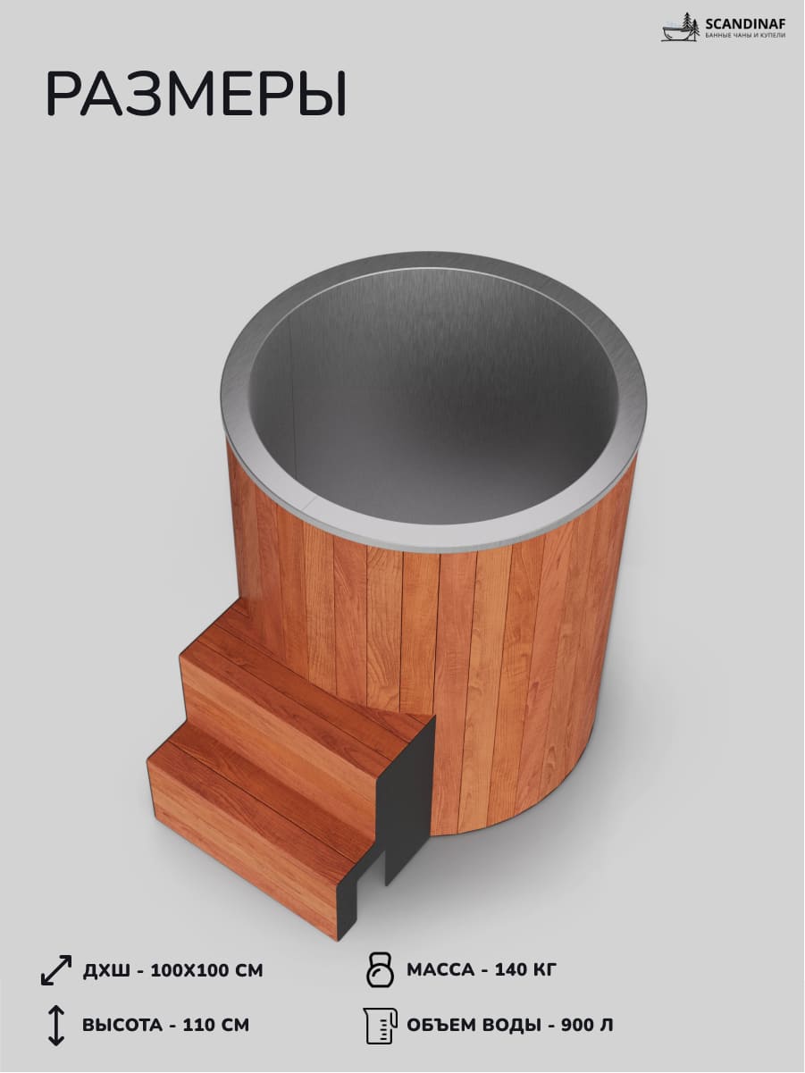 Ледяная купель Scandinaf Arctic 100RR, AISI 304, красное дерево