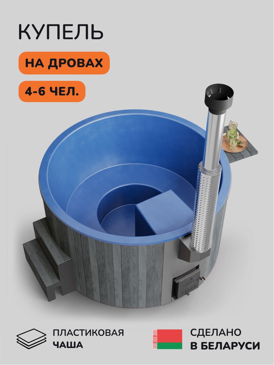 Купель с подогревом на дровах Scandinaf Furako 200PGB, 4-6 чел., серый, синий