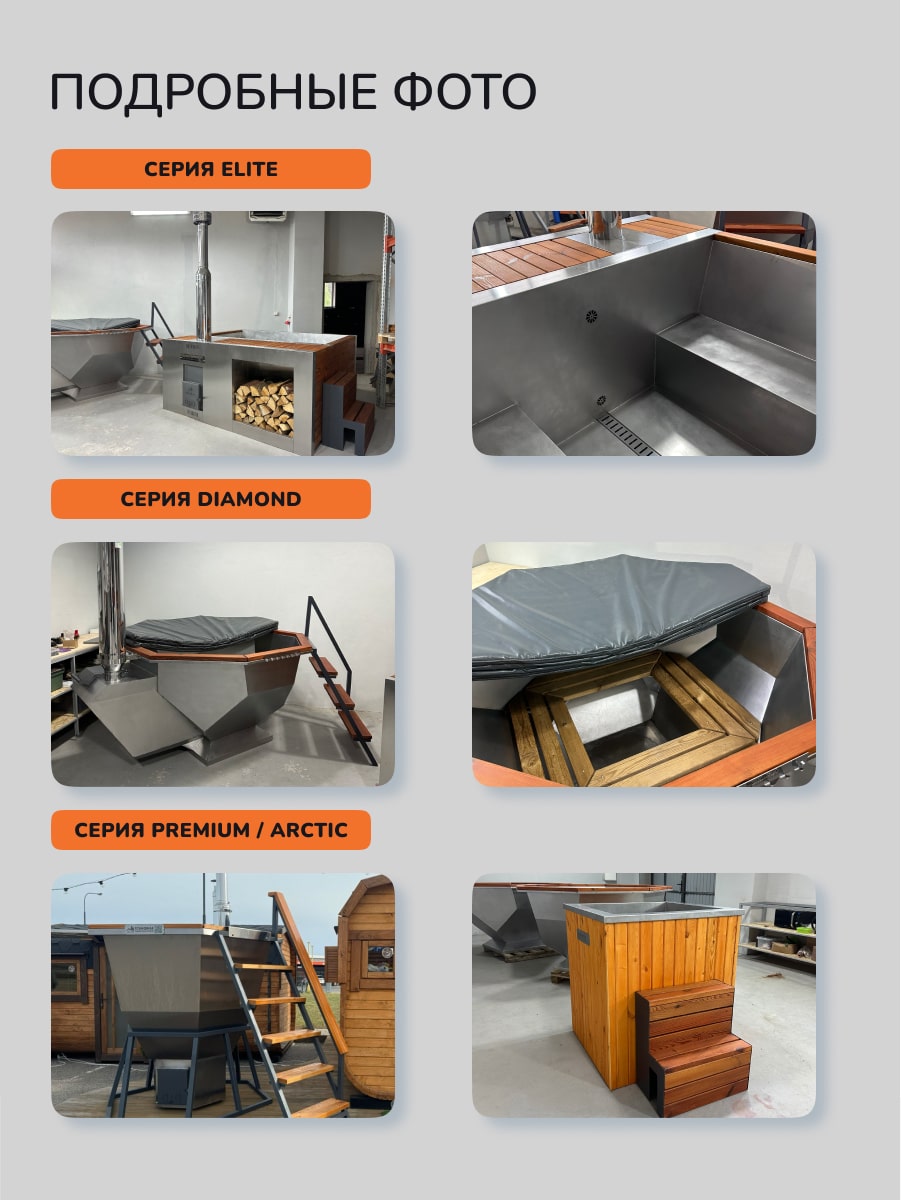 Банные чаны и купели на дровах SCANDINAF серии Comfort, Furako, Diamond, Thermal, Arctic и Elite – диаметром 170, 190 и 200 см рассчитаны на использование до 10 чел. Использование банных чанов зимой позволит вам окунуться в незабываемую атмосферу целого СПА комплекса на вашем участке, а летом подарит приятную прохладу телу в жару и возможность детям резвится в воде целый день. Различные комплектации и формы нашей серии позволят вам выбрать лучший банный чан SCANDINAF для вашего дома, бани и сауны.