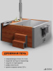 Дровяная печь с водяной рубашкой из нержавеющей стали толщиной 3 мм, выполнена по технологии водяной рубашки и подового горения, что позволяет быстро и безопасно нагреть воду в банном чане до необходимой температуры менее чем за 2 часа. У основания печи расположен сливной кран, чтобы можно было быстро слить воду из чана. С обратной стороны к печи крепится сэндвич-дымоход, который отделяет горячую трубу от прикосновений, тем самым убирает риск обжечься о металл. Составной дымоход изготовлен из нержавеющей стали толщиной 1 мм, что предотвращает постепенное прогорание дымохода, а дефлектор с ветрозащитой и искрогасителем защищает дымоход от осадков, а территорию вокруг чана от продуктов горения, искр и пепла.
