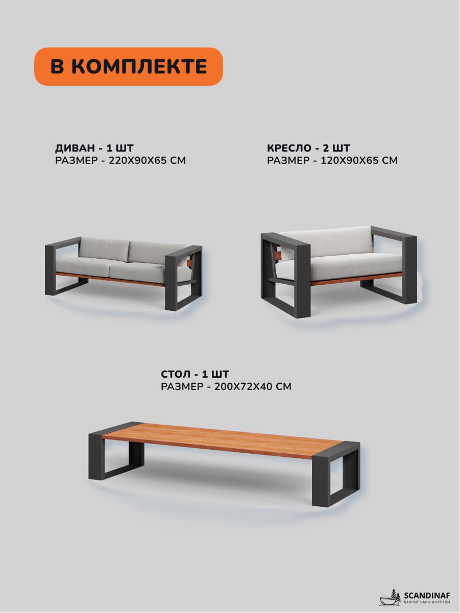 Создайте уютную зону отдыха на вашей террасе или веранде с нашим комплектом современной уличной мебели. Комплект выполнен в минималистичном дизайне и включает все необходимое для комфортного отдыха: просторный диван, два удобных кресла и журнальный стол с натуральной деревянной столешницей.